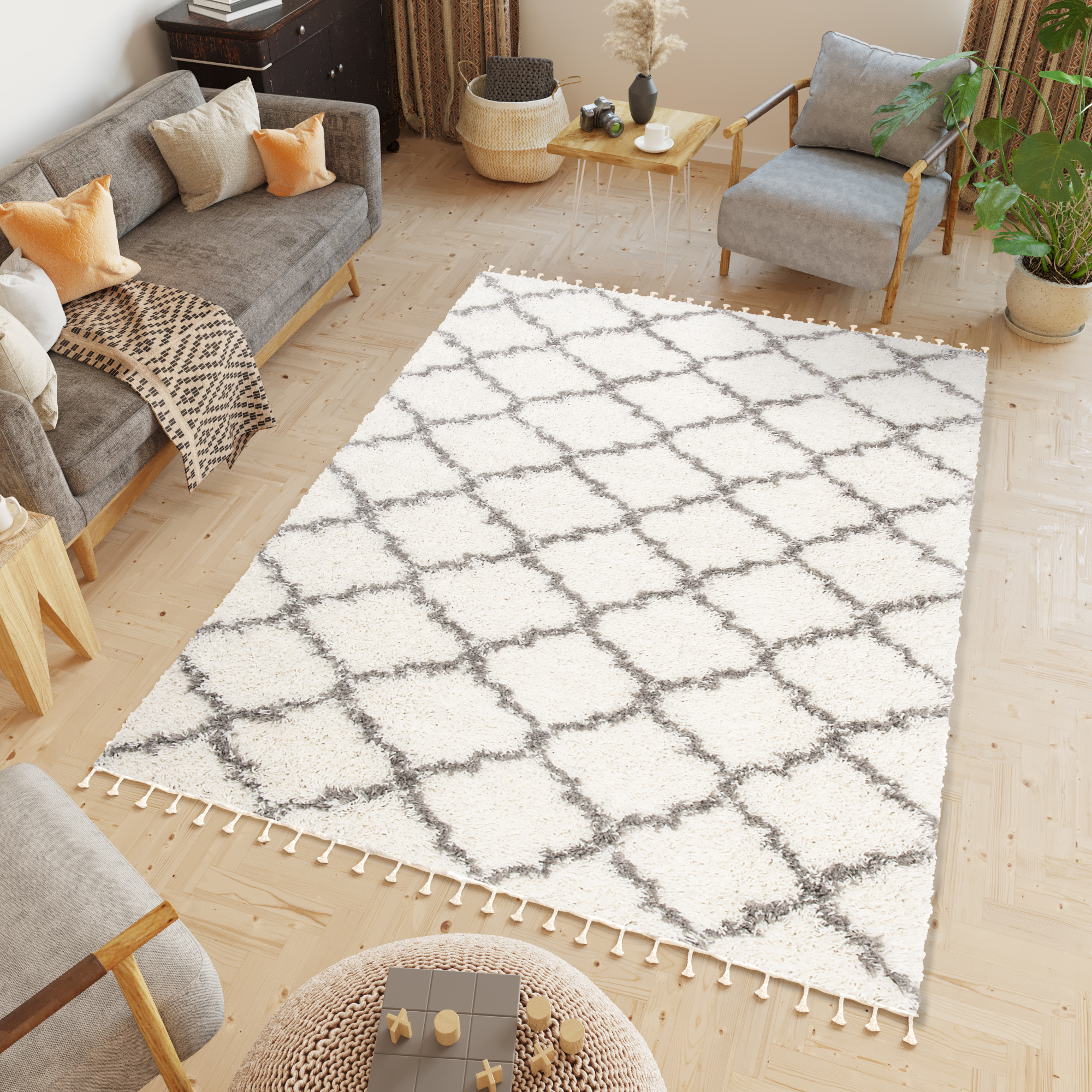 Lerne die Boho-Teppichkollektion kennen, wo Komfort auf raffinierten Stil trifft! Unsere weichen Shaggy-Teppiche mit Fransen sind die perfekte Ergänzung für Dein Zuhause und schaffen eine gemütliche und angenehme Atmosphäre.